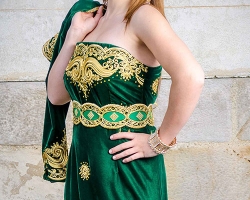 Le karakou Cliquez pour un devis en 48h Le karakou est un vêtement traditionnel algérien porté par les femmes depuis la nuit des temps. Aujourd’hui, la robe algérienne reflète parfaitement cette culture orientale très ancrée dans les traditions du pays mais aussi son évolution. En effet, la tenue traditionnelle a beaucoup évolué depuis sa création sous l’influence de la mode occidentale. Aujourd’hui, cette tenue est très appréciée par les femmes du monde entier et surtout par les futures mariées qui n’hésitent pas à la porter pour un mariage algérien ou un autre événement. Retrouvez notre collection de karakous confectionnés par les negafas du site si vous souhaitez faire l’achat d’une de ces tenues. Qu’est qu’un karakou? Le karakou est une tenue portée en Algérie, surtout dans la région algéroise. Il a pris ses racines dans l’Algérie Antique et a survécu dans le temps pour être encore aujourd’hui dans la garde-robe de nombreuses algériennes. Il s’agit d’un costume qui est composé d’une veste appelée karakou et d’un pantalon fluide qu’on appelle seroual chelka s’il est droit et seroual mdouar s’il est bouffant. Le karakou moderne Le karakou a été travaillé par les meilleurs negafas de la mode orientale. Il est désormais plus au goût du jour et est devenu une réelle inspiration pour les stylistes de haute couture. Le karakou moderne algérois est maintenant une tenue tendance et à la mode qui a donné désormais naissance à de nombreuses variantes. La collection des karakous algériens Le karakou offre désormais la possibilité de porter une jupe en bas, ou un combi-pantalon ou combi-jupe sous la veste. L’encolure est de plus en plus travaillé. Il existe avec différents cols comme le col châle ou le col mao. D’autres part, vous pourrez retrouver de nombreux modèles avec une traine à l’arrière, de quoi sublimer l’habit algérien. Mon mariage oriental vous suggère d’opter pour des modèles de karakous algérois brodés et décorés de perles. Lisez aussi notre article sur Comment porter un karakou? Comment coudre un karakou? La couture des karakous utilise de plus en plus de broderies industrielles qui donnent un résultat plus net que celle brodée à la main. En ce qui concerne la couture, elle est tout à fait classique mais nécessite un savoir-faire technique notamment pour la réalisation des types de cols et du pantalon seroual. Le patron de couture Si vous voulez vous initier, vous devez vous référer à des patrons de couture pour ne pas faire d’erreur. Pour la veste du karakou algérois, tracez vos mesures en prévoyant l’encolure, l’emmanchure et une ouverture devant comme pour faire une veste classique. Selon votre modèle de veste, il est possible de cintrer à la taille ou non. Puis pour votre pantalon, prenez un tissu rectangle et repliez-le de façon à obtenir un triangle. Surpiquez ensuite pour rassembler les deux côtés et cousez au niveau des ourlets. Rattachez ensuite à la ceinture de la taille. Les tissus utilisés Pour la veste karakou, le tissu par excellence est le velours. Il s’agit d’un tissu très noble qui rappelle en plus les origines du vêtement. Puis pour le seroual, choisissez un tissu satiné épais mais souple comme la soie sauvage. Vous serez alors à l’aise dans votre nouveau vêtement d’apparat et de lumière grâce à un excellent sentiment de confort. Plus d’infos sur le billet Comment choisir le tissu de son karakou? Choix de la couleur d’un karakou Pour ce vêtement atypique, les broderies couleur or sont très présentes. Achetez donc une couleur qui se porte bien avec un karakou doré, comme le rouge, le noir ou le bleu ciel. Vous serez sûre de faire la différence. Et surtout, il faut garder en tête que la couleur de vos tenues soient bien conformes au thème de votre mariage et à son code couleur, mais également que votre robe soit en parfaite harmonie avec le costume de votre futur mari. Acheter un karakou S’agissant d’un modèle de haute couture, il est possible de faire l’achat d’un karakou à partir de 1000 euros selon le tissu utilisé et sa qualité. Mais vous en trouverez dès 150 euros pour un karakou pas cher en vente dans les showrooms. Pour les petits budgets, vous pouvez également faire la location d’un karakou algérien. Comptez entre 50 et 150 euros. Plusieurs tailles sont disponibles de S à XL aussi pour la vente que pour louer. Cependant, pour les femmes de grande taille, il est toujours possible de faire la confection d’un karakou sur mesure sur demande. D’autres robes algériennes Ma robe kabyle Ma robe oranaise Ma robe tlemcen Mon bedroune algérois Ma robe constantinoise Ma robe chaoui Obtenir un devis en 48h Nom * Mail * Téléphone * Date du mariage * Lieu du mariage * Message *
